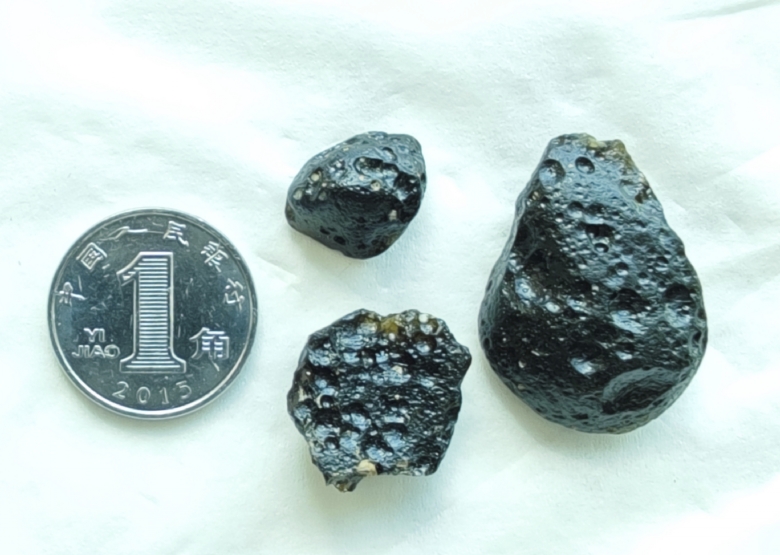 在相距第一颗样品往东约150米的田蓬中心小学附近,我们又有新的发现,在耕地耕作层中找到了2颗小样品。