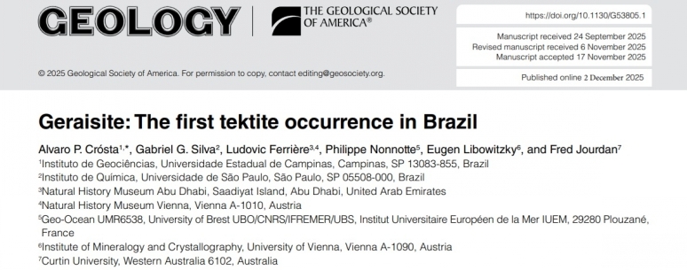 据互联网信息,美国地质学会主办的国际权威期刊《地质学(Geology)》,于2025年12月2日在线上最新发表了科学论文《Geraisite: The first tektite occurrence in Brazil》——巴西首次发现玻璃陨石吉拉斯石(Geraisite),成果显示在南美洲的巴西东南部米纳斯吉拉斯州(Minas Gerais)北部发现了罕见的远撞击溅射玻璃。
