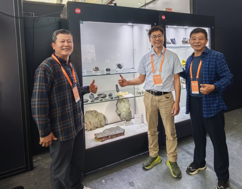 沙龙墨友参观郭周平教授的雷公墨、利比亚玻璃陨石、捷克陨石等精美标本展品。