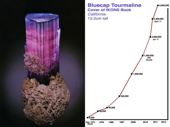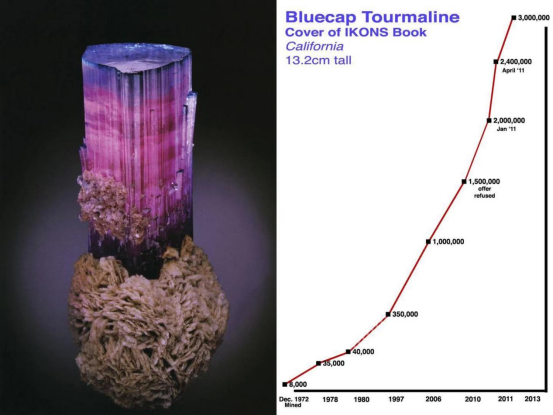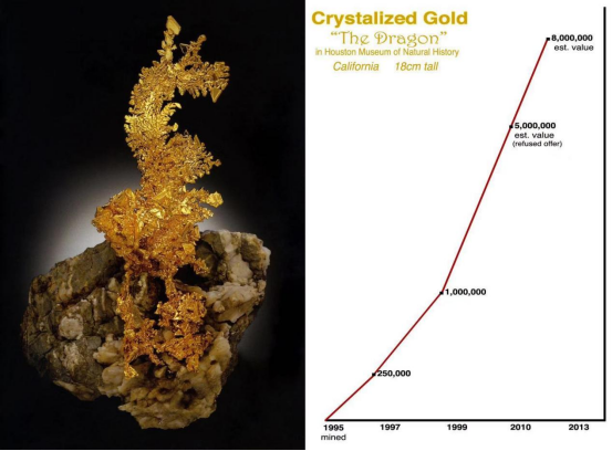 我举一个例子,咱们瑶岗仙出来的两块最好的萤石是在我的美国合作伙伴Robert 手上,他也是一个比较大的收藏家,收藏很多中国的矿石晶体标本。前两年他资金比较紧张,就把这两块萤石卖了 100 万美金,他卖完后这三年就没睡好觉,因为一睡觉就做梦,梦到那两块萤石,这就是收藏家的情怀。所以,三年以后他又把其中的一块买了回来,花了 100 万美金,相当于三年升值一倍。Robert 把第一块买回来了才睡得着。
