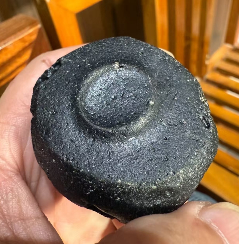 雷公墨底部可见轻微撞击痕迹。