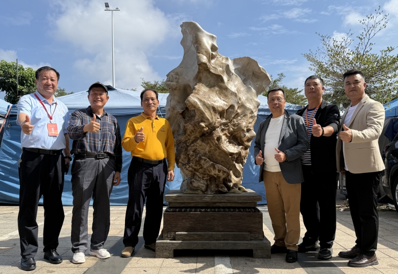 在会展期间,元月28美浪湾酒店懂事长崔总赠送给澄迈赏石协会吴泽芝会一方广西来宾北丹石。