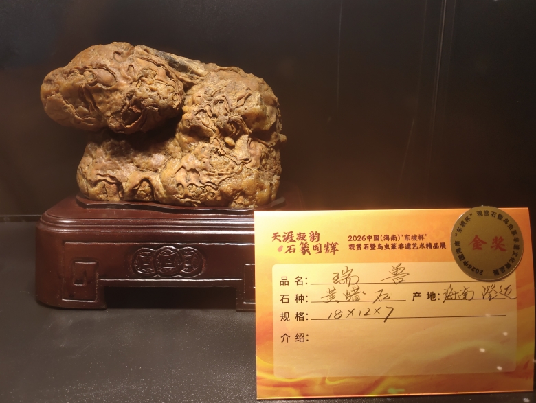 获得金牌的海南澄迈黄腊石:瑞兽。