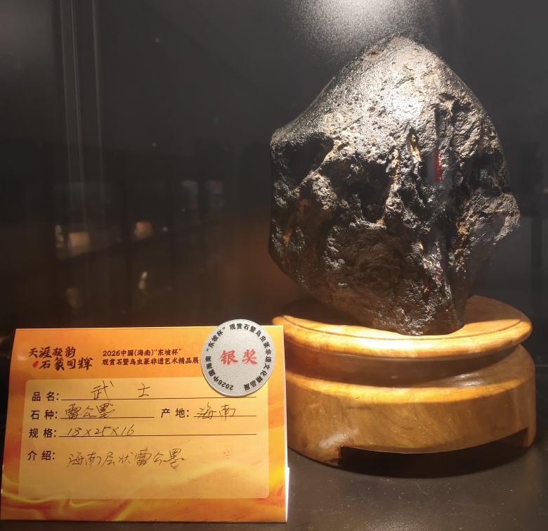 雷公墨博览网站选送的海南层状玻璃陨石雷公墨展品“武士”,荣获银奖。