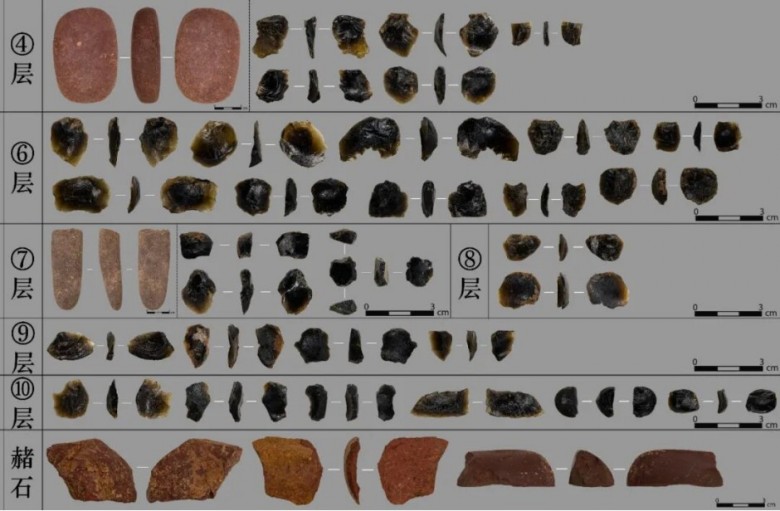 尤为特别的是,这里的打制石器绝大多数以玻璃陨石为主要原料,个体小巧且工艺独特,以刮削器、尖状器为主,技术体系与石制品组合世界罕见,成为区别于其他旧石器时代遗址的鲜明文化标识,雷公墨石器分布广泛,目前已从第4层至第10层发现大量雷公墨石器标本。