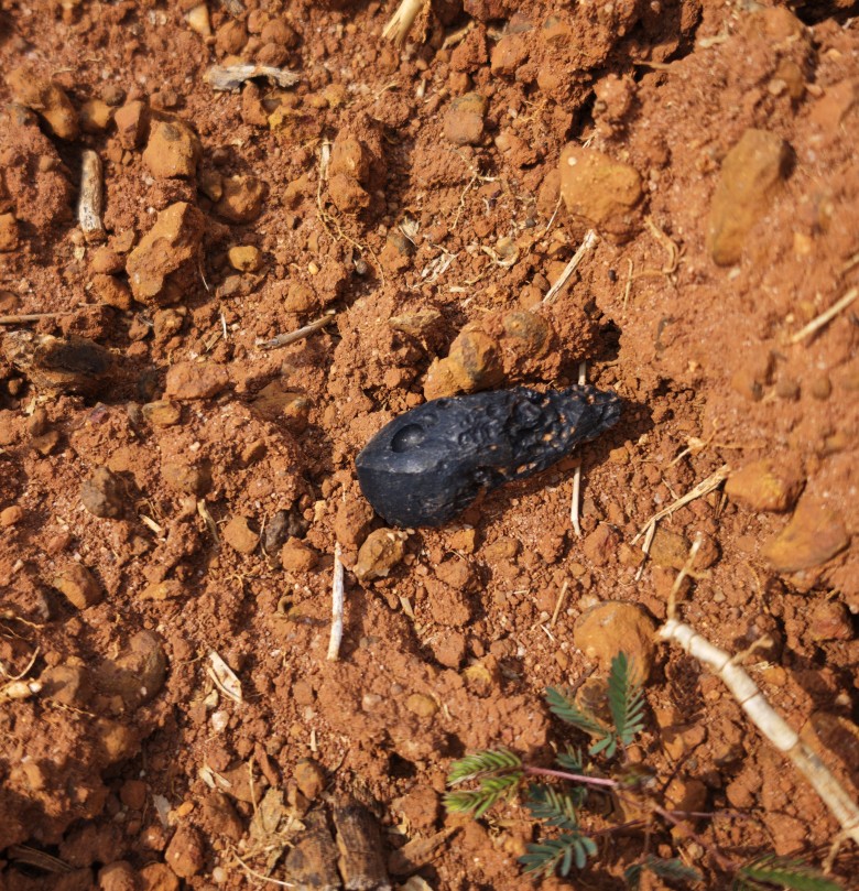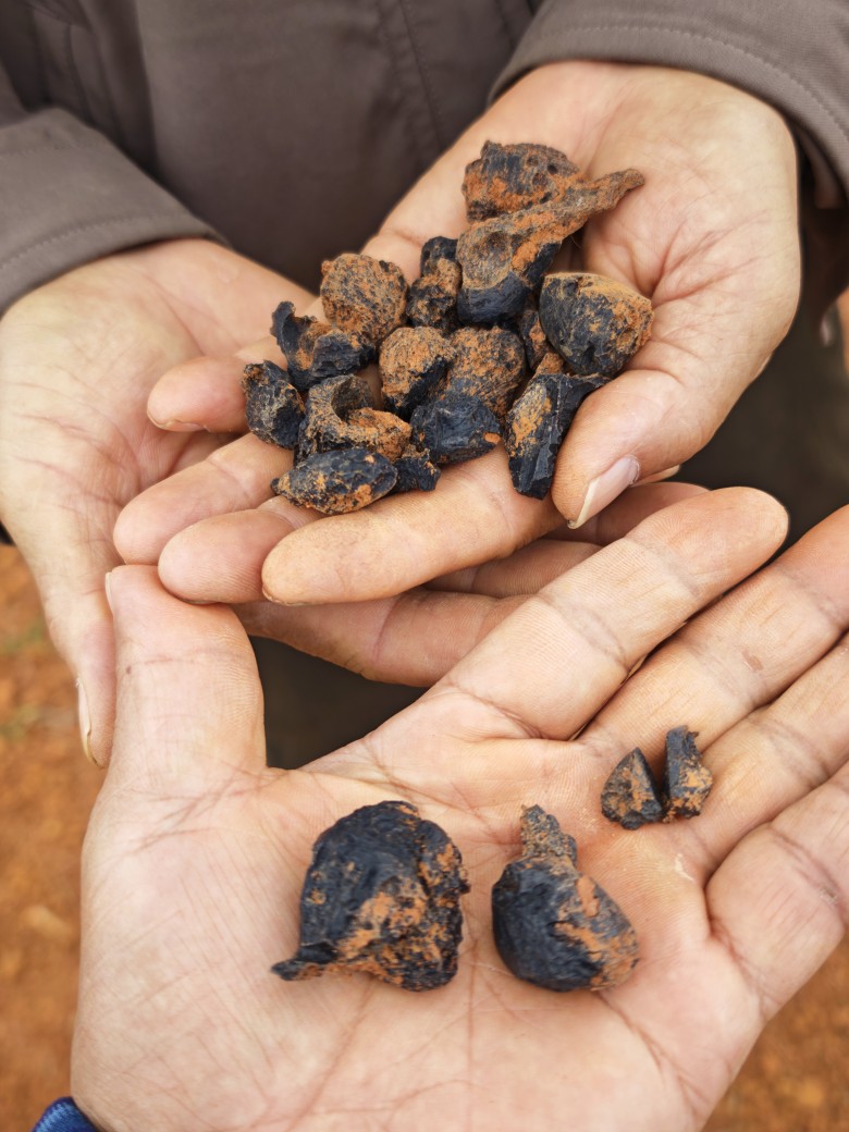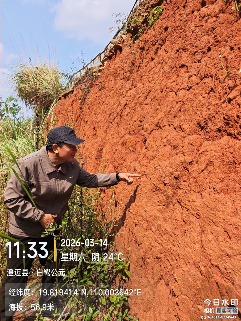 执墨的第一站在石馆附近的白鹭公元小区,在小区北侧的人工开挖而裸露的北海组地层底部含砾砖红壤之中,发现不少原生的雷公墨碎片。